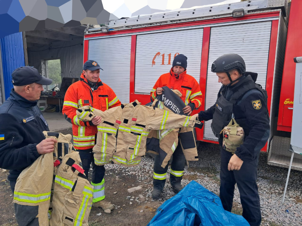 Für den Katastrophenschutz (DSNS) in Kherson lieferten wir Brandschutzkleidung, Feuerwehrschläuche sowie Rettungsgeräte.