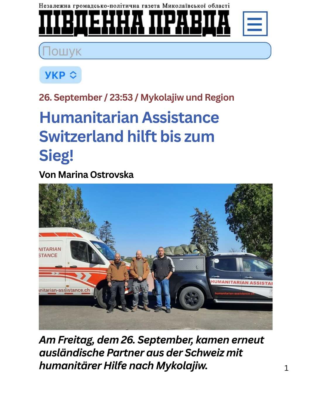 Mit unserer zweiten Hilfstour im Jahr 2025, lieferten wir Hilfsgüter im Wert von rund CHF 260’000 an Spitäler, Rettungsdienste und Feuerwehren in den Regionen Mykolaiv und Kherson.