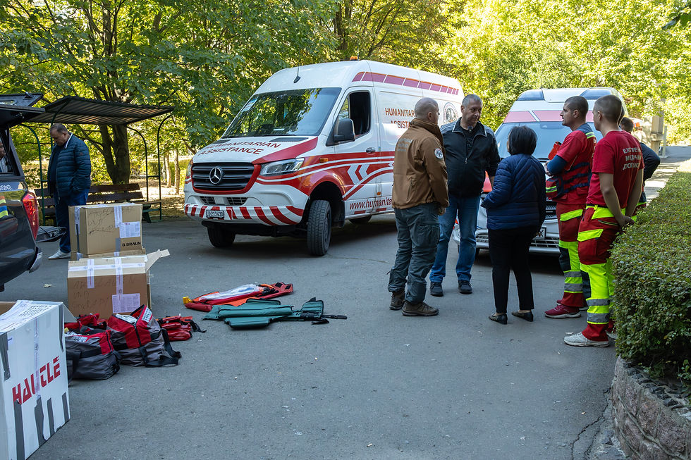Bei unserer zweiten Hilfstour 2025 unterstützten wir Spitäler, Sanitäter und Feuerwehren in den Regionen Mykolajiw und Cherson mit Hilfsgütern im Wert von rund CHF 170’000.